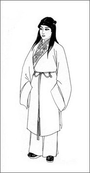 形制似色褶子,但尺寸略短,而且领子可以绣花。它用于书童这一类型人物。正因为它是较短的褶,所以又称“小褶子”。