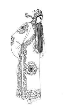 用于高级文官。主要纹样为团花(周身共10个花团)。绒绣或平金绣。衣边及袖口绣缘饰纹样,不单镶边。