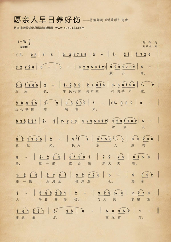 愿亲人早日养好伤(芭蕾舞剧《沂蒙颂》选曲)曲谱