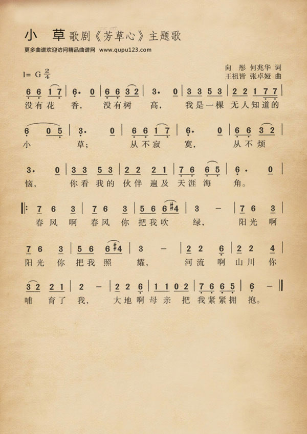 小草(歌剧《芳草心》主题歌---版本一)曲谱