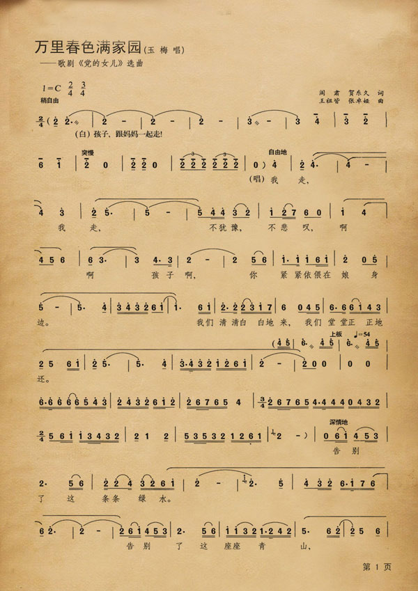 万里春色满家园(歌剧《党的女儿》选曲)曲谱