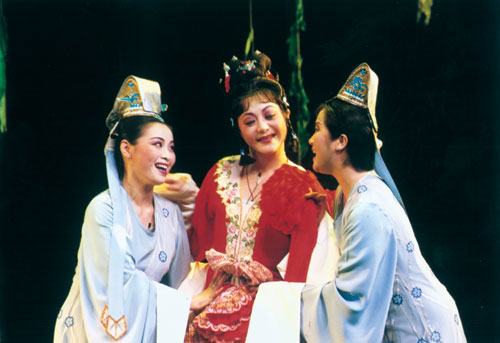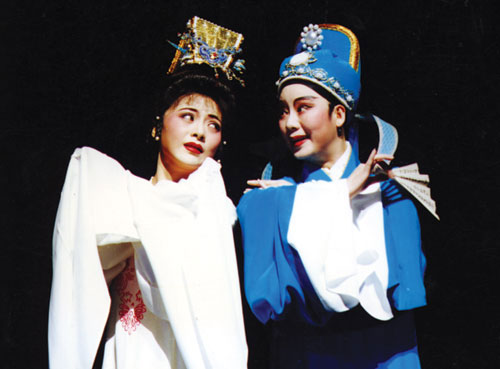 越剧《玉簪记》,钱惠丽饰潘必正、陈颖饰陈妙常,1996年8月剧照。