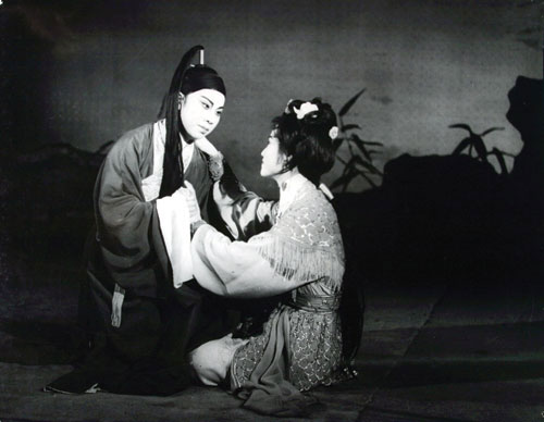 越剧《追鱼》,徐玉兰饰张珍、王文娟饰鲤鱼精,1956年11月-2剧照。