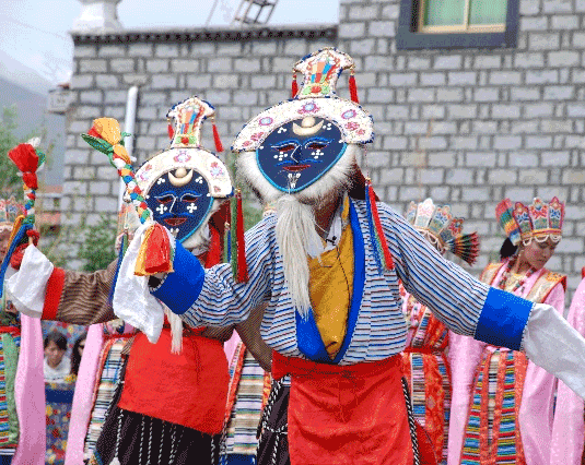 藏戏的藏语名叫“阿吉拉姆”,意思是“仙女姐妹”。据传藏戏最早由七姐妹演出,剧目内容又多是佛经中的神话故事,故而得名。藏戏起源于8世纪藏族的宗教艺术。17世纪时,从寺院宗教仪式中分离出来,逐渐形成以唱为主,唱、诵、舞、表、白和技等基本程式相结合的生活化的表演。藏戏唱腔高亢雄浑,基本上是因人定曲,每句唱腔都有人声帮和。藏戏原系广场剧,只有一鼓一钹伴奏,别无其他乐器。
